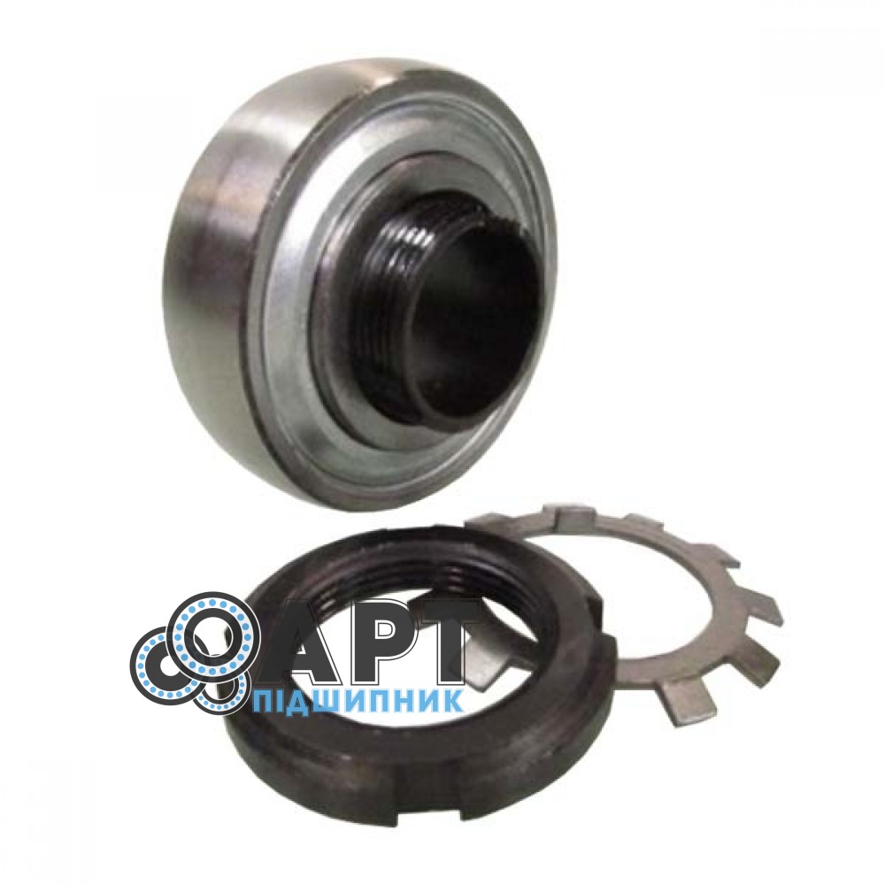 Закріплюваний кульковий підшипник призначений для сприйняття радіальних та помірних осьових навантажень при фіксованому положенні на валу або в корпусі. Особливість конструкції полягає у можливості надійного кріплення підшипника за допомогою гвинта або фіксуючого елемента, що запобігає його провертанню або зміщенню під час роботи. Конструкція підшипника включає внутрішнє та зовнішнє кільця, кульки і сепаратор, що забезпечує плавне обертання, низький рівень тертя та стабільну роботу вузла. Закріплювані кулькові підшипники широко застосовуються в редукторах, приводних механізмах, сільськогосподарській техніці та іншому обладнанні, де важлива фіксація підшипника на валу або в посадковому місці.