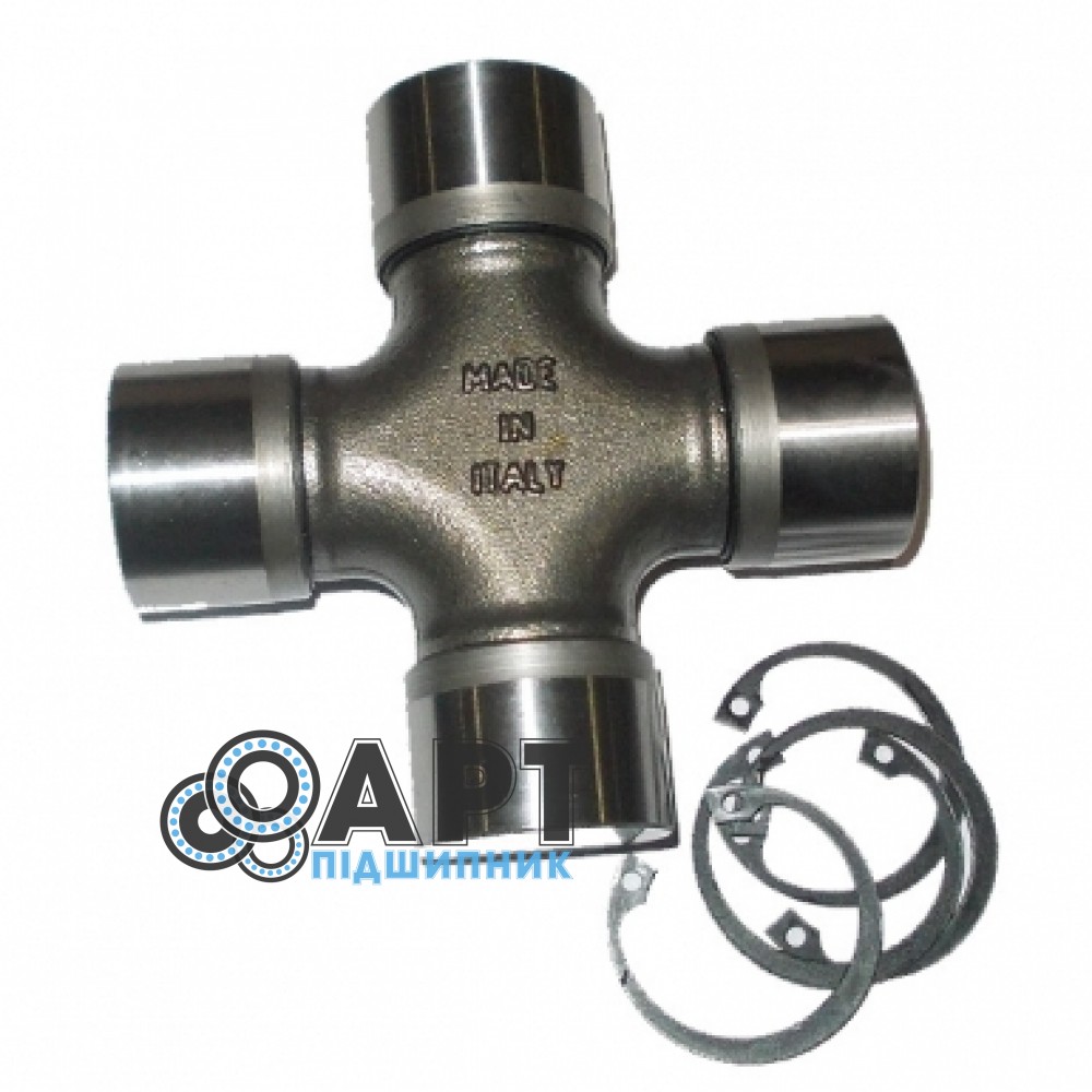 Хрестовина карданного валу - це хрестоподібний шарнір, який забезпечує співвісність всіх обертових елементів карданного валу. Вона є гнучким з'єднанням двигуна і ведучого моста. Конструктивно вона являє собою взаємно перпендикулярні осі, які спираються на голчасті підшипники, встановлені в качанах карданного валу. AH207921 JOHN DEERE Хрестовина карданного валу - якісна запчастина для вашої сільгосптехніки